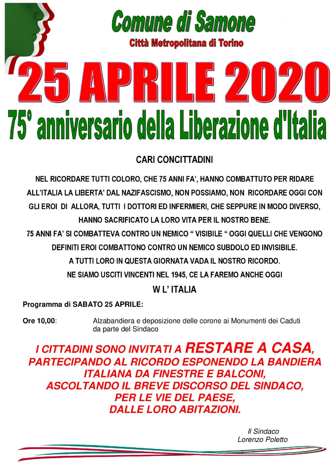 25 aprile 2020 - 75° anniversario della Liberazione d'Italia