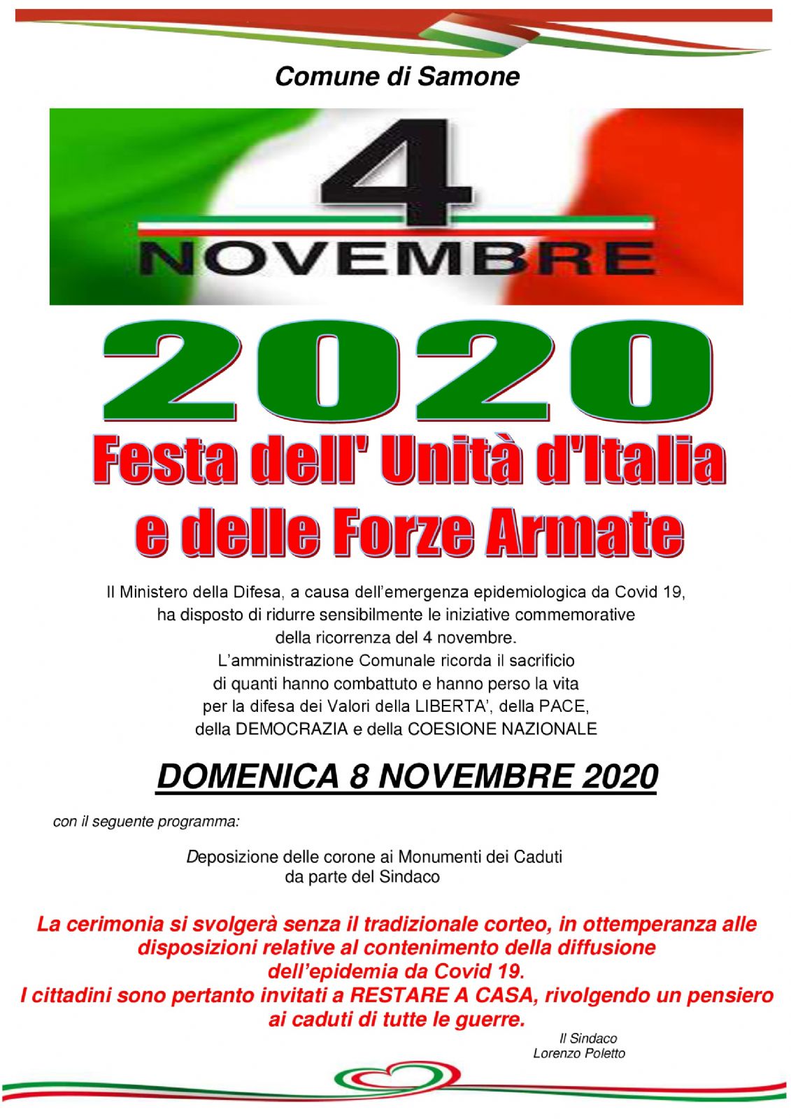 4 Novembre 2020 - Festa dell'Unità d'Italia e delle Forze Armate