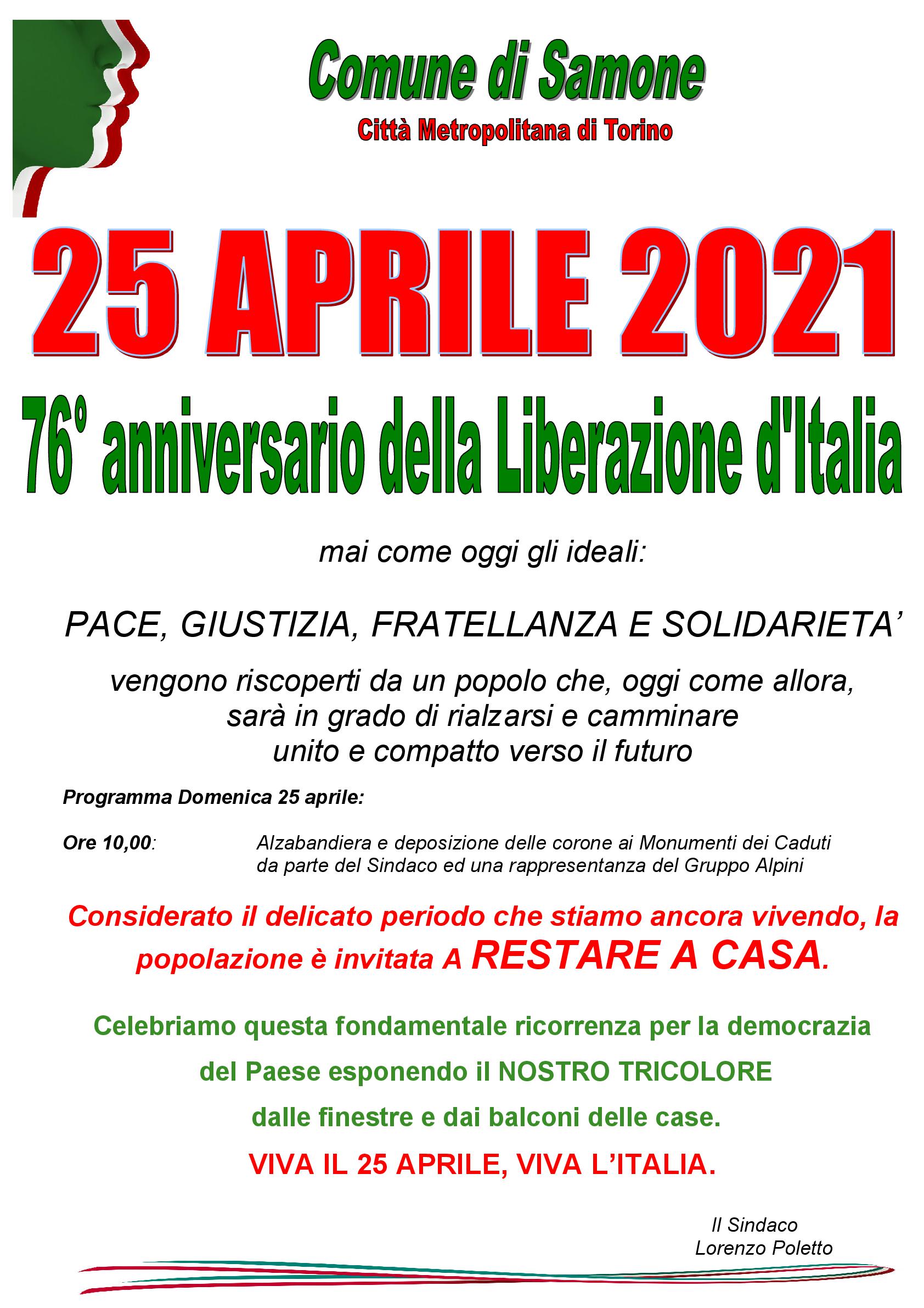 25 aprile 2021 - 76° anniversario della Liberazione d'Italia