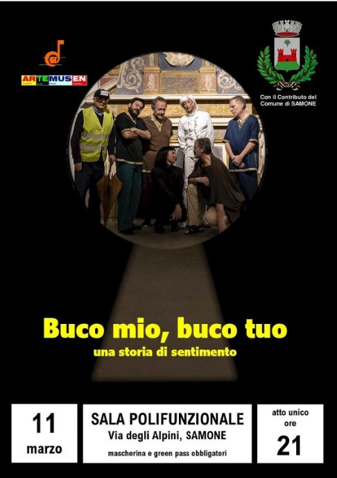 Il Comune di Samone in occasione della Giornata Internazionale della Donna dell'8 marzo presenta, venerdì 11 marzo alle ore 21,00 presso il Salone Polifunzonale sito in viale degli Alpini, lo spettacolo teatrale “BUCO MIO, BUCO TUO”. Brillante commedia messa in opera dalla compagnia ArteMedia.