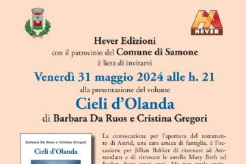 Hever Edizioni con il patrocinio del Comune di Samone è lieta di invitarvi alla presentazione del volume "Cieli d'Olanda" di Barbara Da Ruos e Cristina Gregori