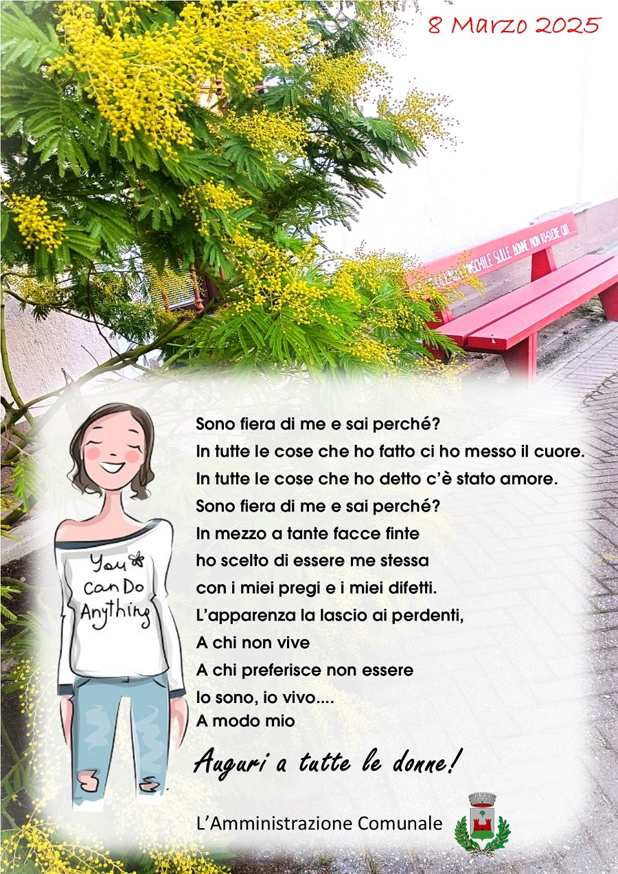 In occasione dell' 8 marzo, l' Amministrazione Comunale porge i suoi Auguri a tutte le donne!