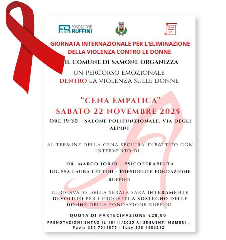 Il ricavato della serata sarà interamente devoluto per i progetti a sostegno delle donne della Fondazione Ruffini.