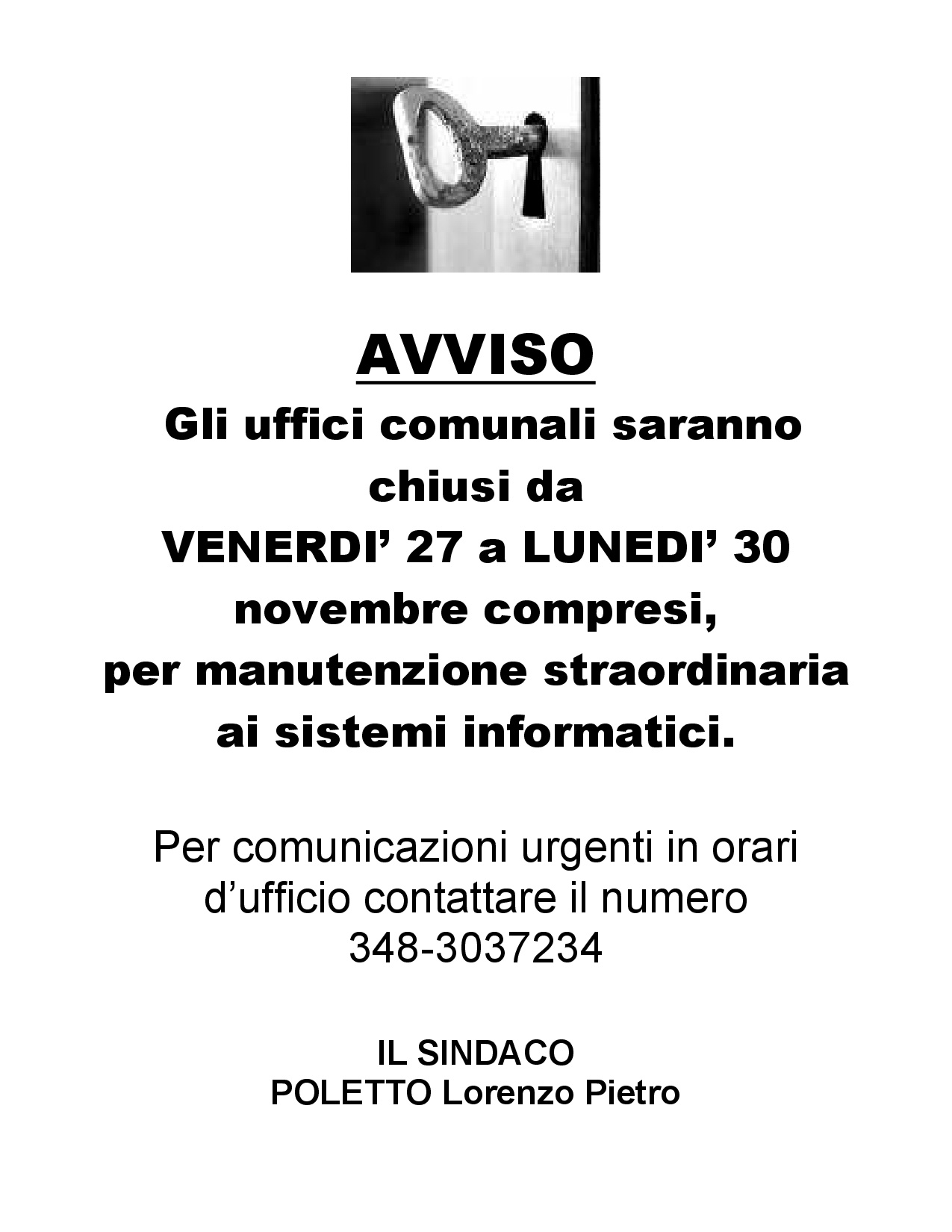 27-30 novembre 2020: Chiusura straordinaria uffici comunali