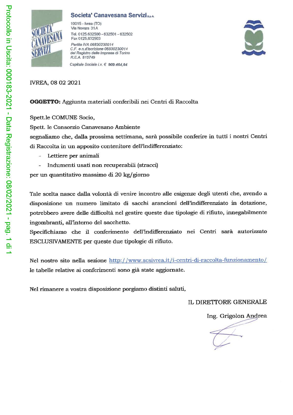 Aggiunta materiali conferibili nei Centri Raccolta Rifiuti SCS