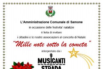 L' Amministrazione Comunale è lieta di invitarvi al concerto di Natale "Mille note sotto la cometa" interpretato dai Musicanti di strada - Folk...